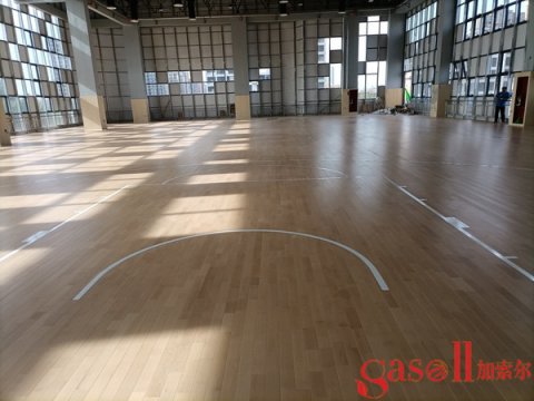 因而世界上绝大多数体育馆的面板均是选用枫木来制造。面板含水率不得超越本地平衡含水率。国外进口的MFMA的枫木面板标准一般有20mm、22mm厚度,宽度有52mm、68mm等等,国产板的尺度大多数为22mm厚,带凹槽及凸缘。五.钉子:面板钉子选用50毫米L型或T型木地板专用强力钉;安稳层一般选用U型钉与龙骨进行衔接。六.油漆:油漆分为工厂涂装的UV漆和施工现场涂刷的聚胺酯漆两种,均需满意摩擦系数0.4-0.7的要求。在环保方面需做到做到无三苯(即苯、、二)和三无苯(即漆、固化剂、稀释剂三项不含苯),且耐磨性、防滑性、光线折射度等方面体现杰出。七.划线:选用同面板漆配套的划线漆。八.踢脚线:30mm×30mm型实木踢脚线。